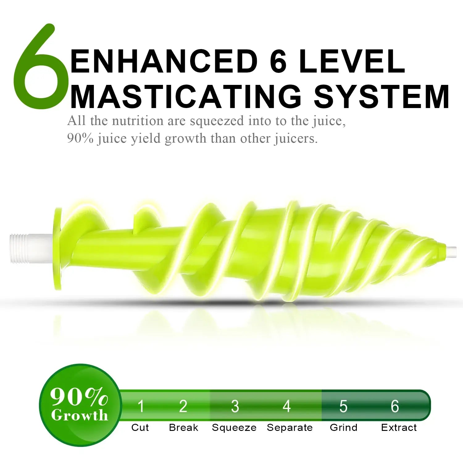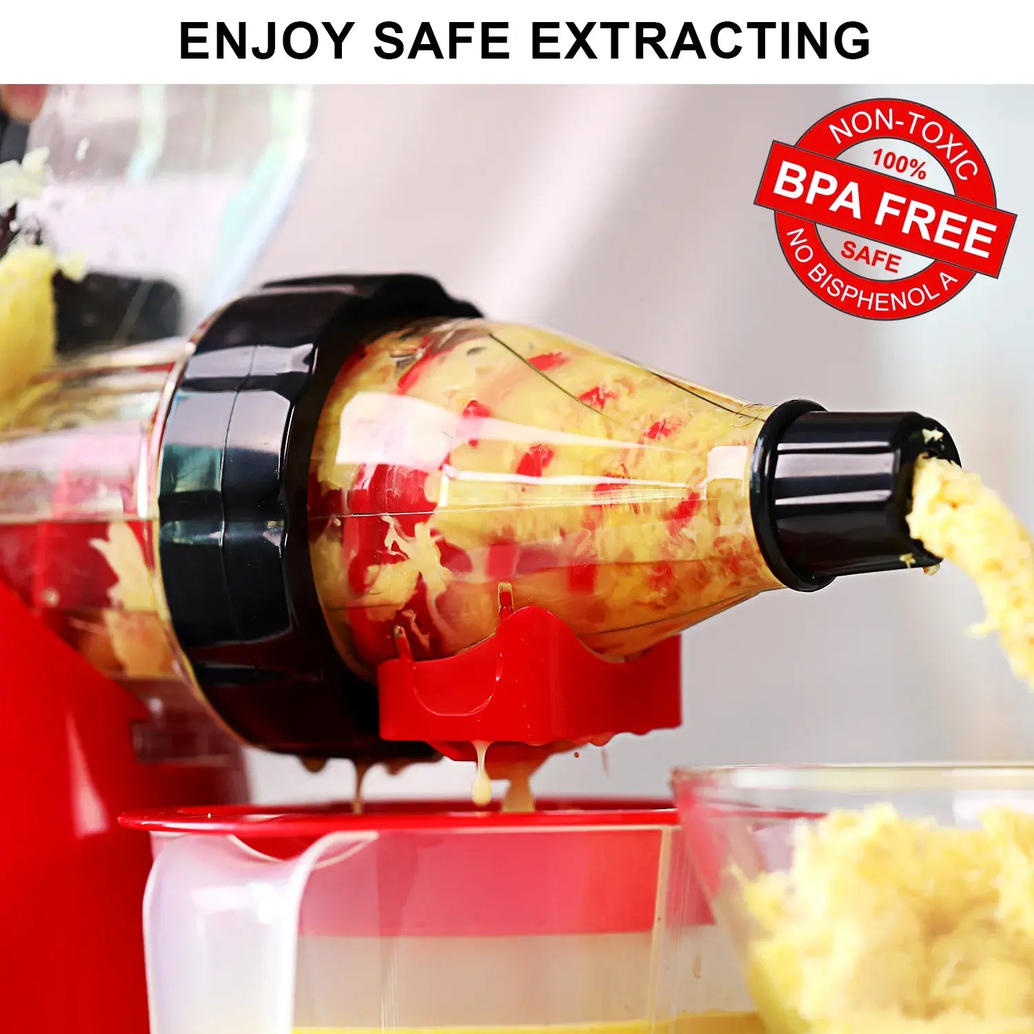 🍇Obtén el jugo más puro para tiEl exprimidor de prensado en frío separa la pulpa del jugo fácilmente. Además, cuenta con un filtro debajo de la salida y un filtro en el depósito, que separa la pulpa del jugo dos veces, lo que le permite obtener un delicioso jugo sin pulpa.