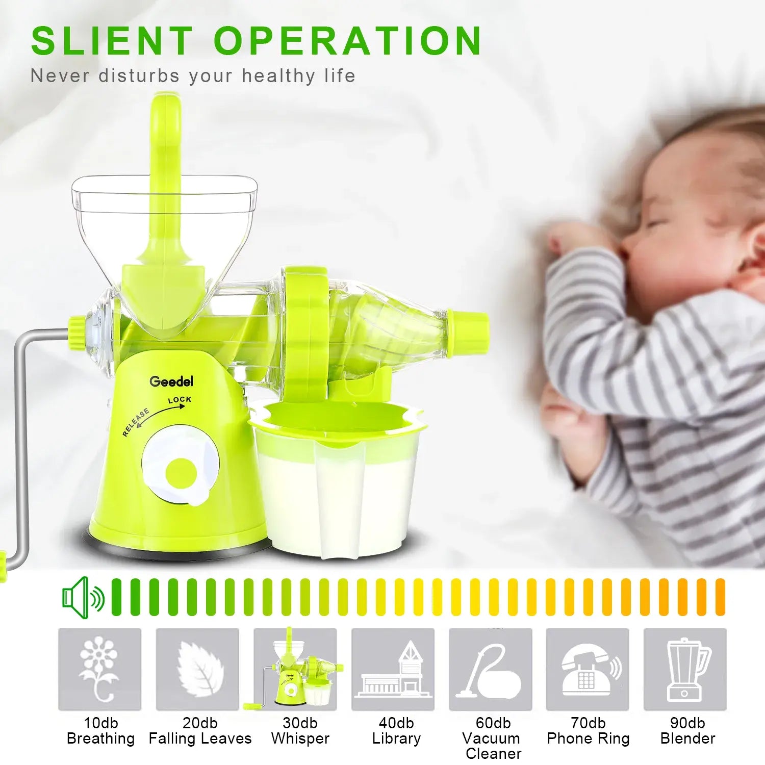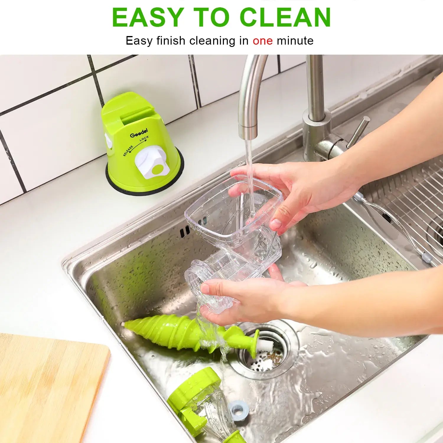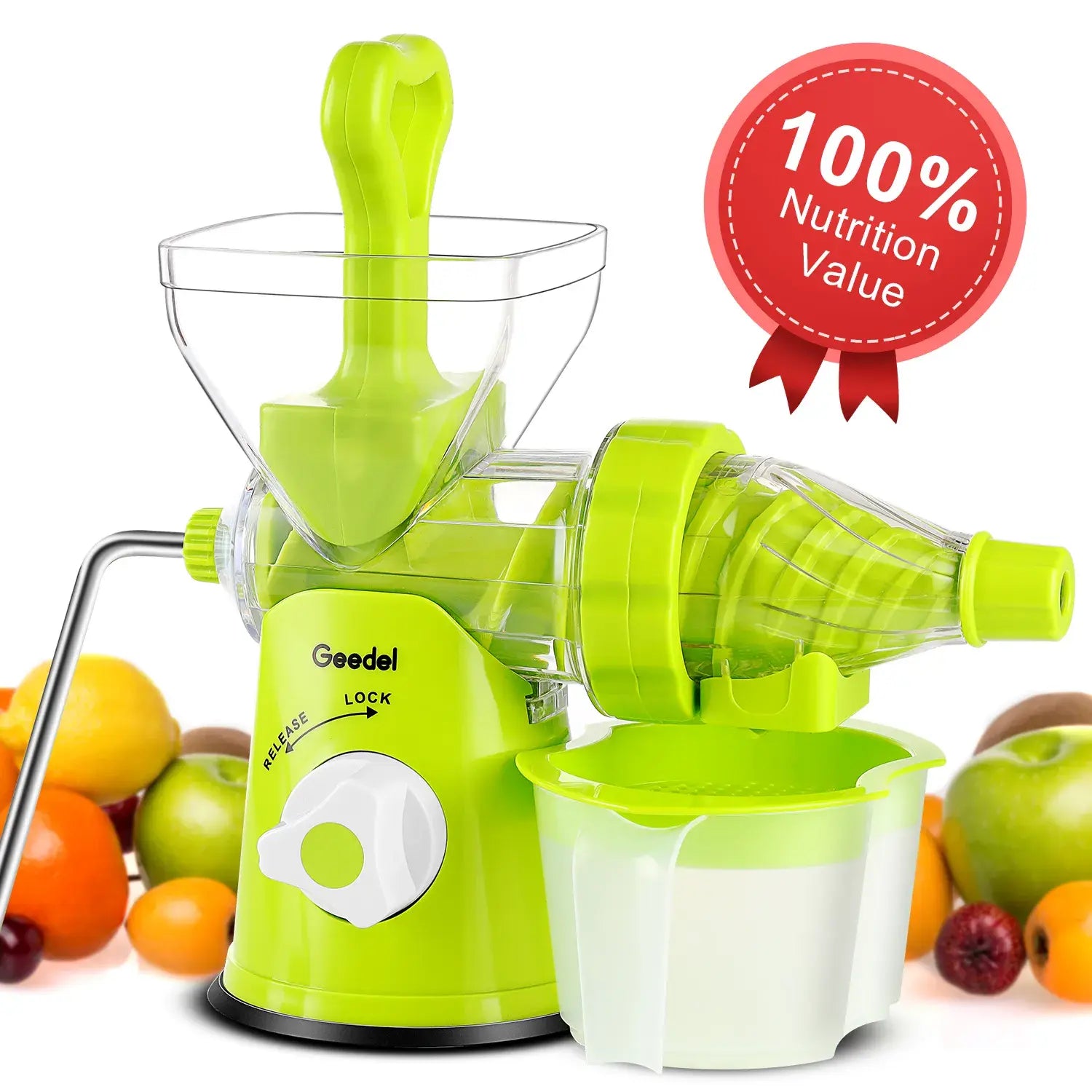 Exprimidor manual de prensado en frío Geedel, con manivela, de baja velocidad para maximizar los nutrientes, sin electricidad, sin BPA, fácil de limpiar.