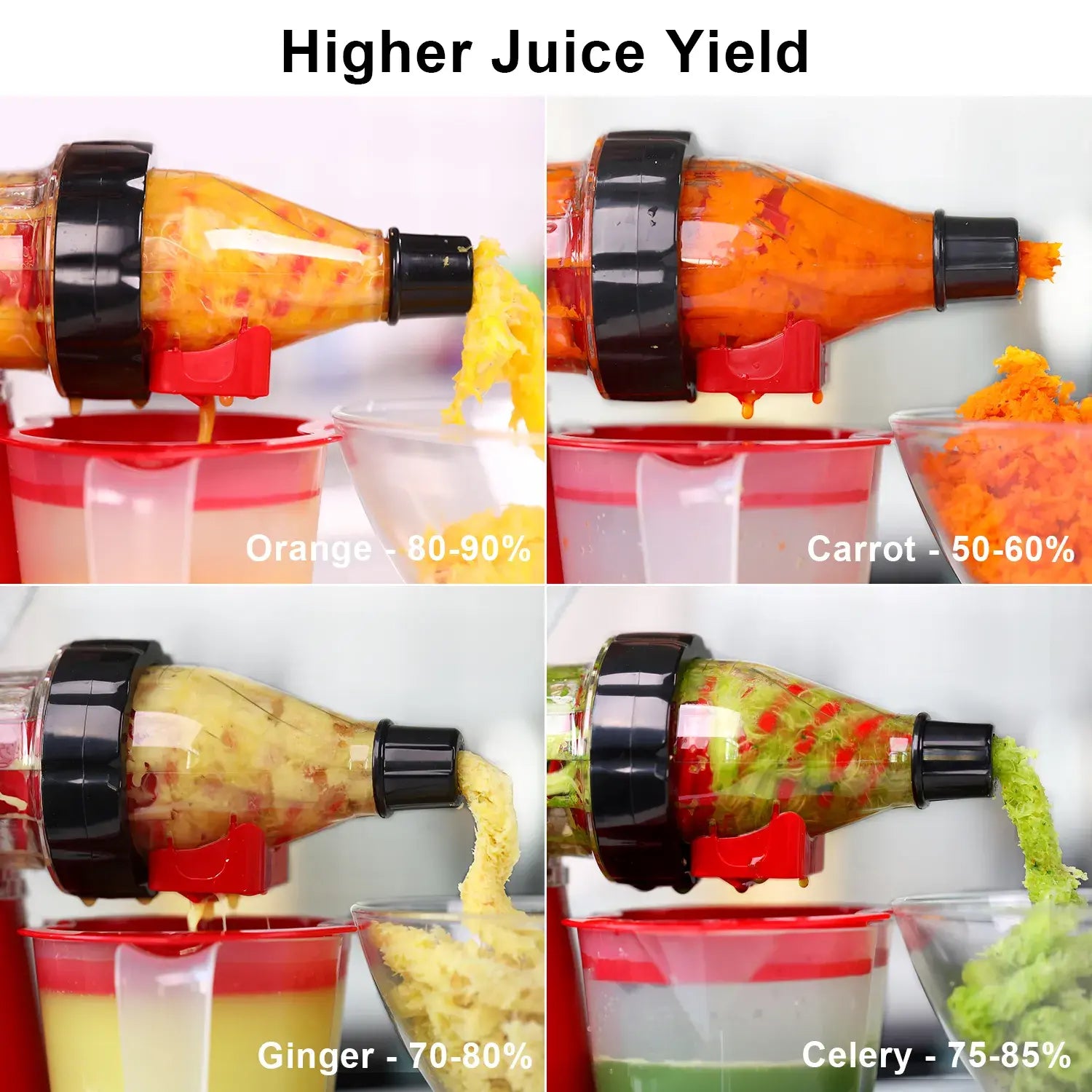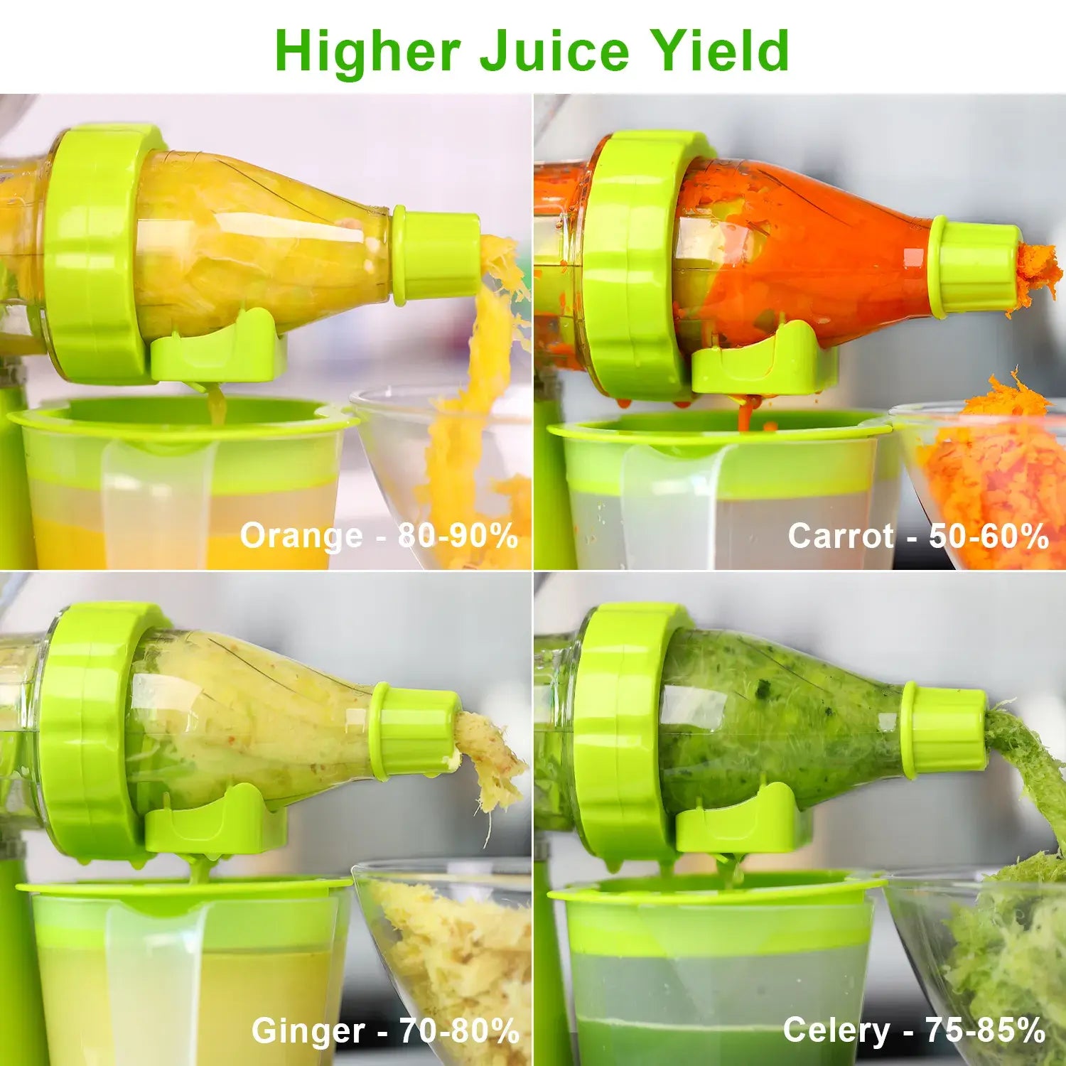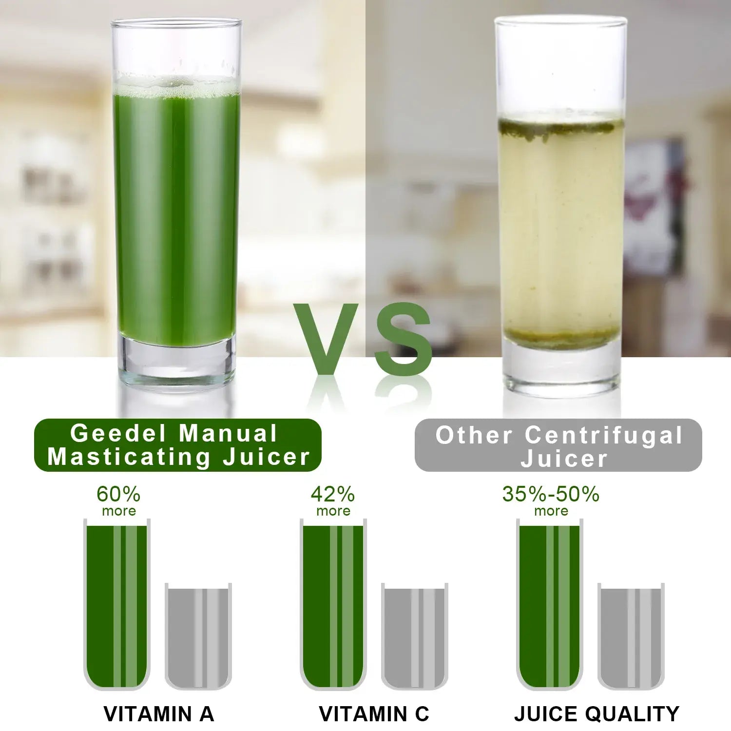 Exprimidor manual de prensado en frío Geedel, con manivela, de baja velocidad para maximizar los nutrientes, sin electricidad, sin BPA, fácil de limpiar.