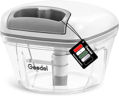 Descubre la picadora de alimentos Geedel Pull Food Chopper de 2 tazas: una herramienta compacta que te ahorra tiempo y te permite preparar tus comidas sin esfuerzo. Con solo unas cuantas pasadas, puedes picar finamente cebolla, ajo, frutos secos o hierbas sin necesidad de usar un cuchillo. Cada pasada equivale a docenas de cortes limpios y uniformes.
