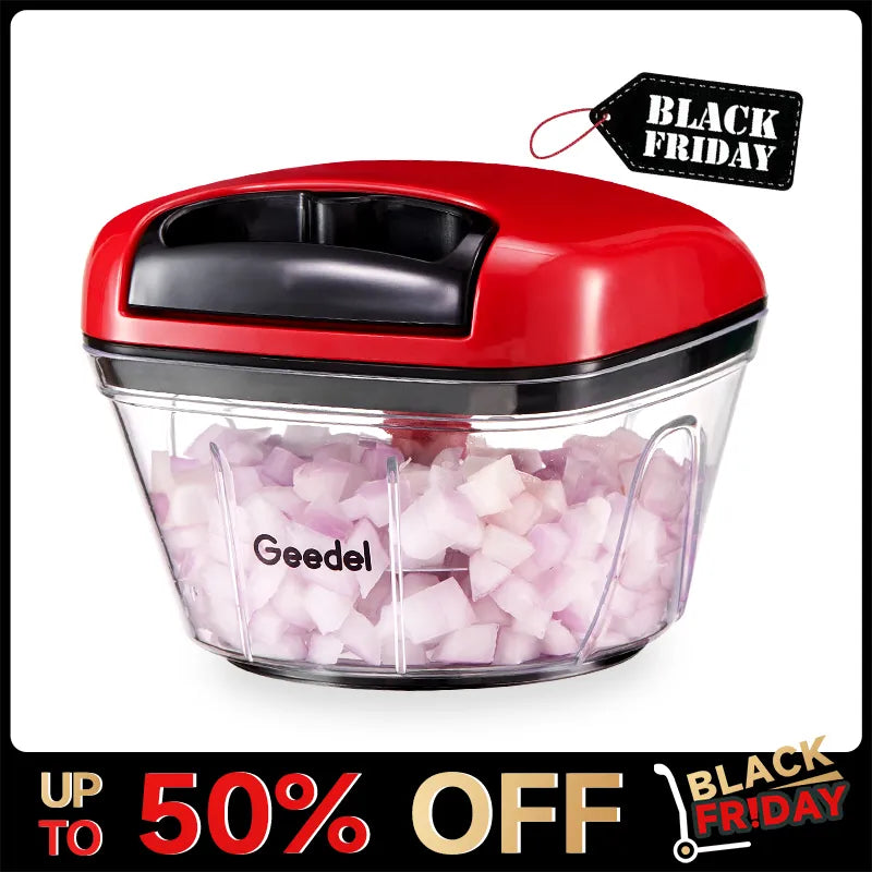 Hachoir à aliments Geedel - Hachoir à légumes manuel pour robot culinaire, hachoir à tirer avec ficelle, coupe-légumes pour légumes, fruits, salade, oignon, gingembre, noix, herbes, etc.