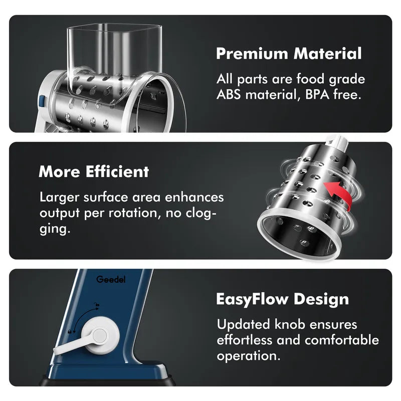 Designed for modern home kitchens in 2026, the upgraded Geedel Rotary Cheese Grater helps you prep ingredients faster—whether you’re cooking a quick weeknight dinner or hosting family during the holidays.