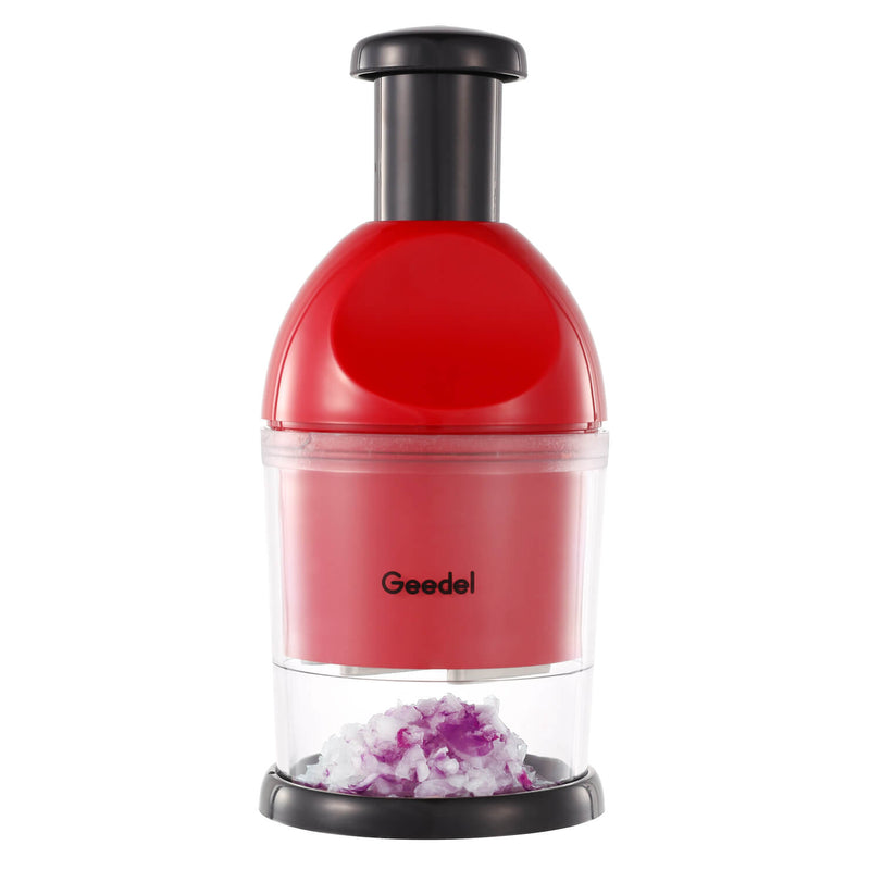 I absolutely love my Geedel Food Chopper! It has made meal prep so much faster and more enjoyable. Chopping onions used to be the worst part of cooking for me, but with this manual chopper, it��s done in seconds��and no more tears! The slap mechanism is satisfying to use and gives me nice, even cuts every time.It��s also super easy to clean, which is a huge bonus. I just rinse it or pop it in the dishwasher and it��s ready to go. The compact size makes it easy to store, and the bright red color adds a fun pop to my kitchen.Whether I��m dicing veggies for a stir-fry, mincing garlic, or even chopping nuts for a salad, this chopper handles it all like a pro. For the price, you really can��t beat the convenience and quality. Highly recommend for anyone who wants to save time in the kitchen without sacrificing results!